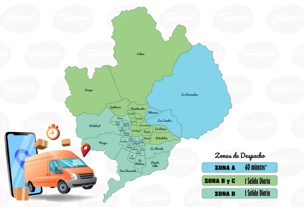 Despacho dentro de las comunas: Las Condes, Lo Barnechea y Vitacura (cercanas a Tienda Estoril).